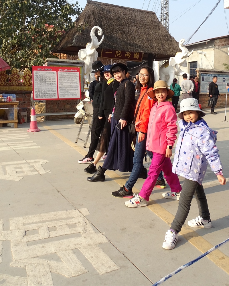 上午,游览德宏市区的“一寨两国”,它位于有名的中缅边境71号界碑旁,是典型的“一个寨子两个国家”地理奇观。国境线将一个傣族村寨一分为二,中方一侧的称为银井,缅方一侧的称为芒秀。寨中的国境线以竹篱、村道、水沟、土埂为界,因此,中国的瓜藤爬到缅甸的竹篱上去结瓜,缅甸的母鸡跑到中国居民家里生蛋便成了常有的事。寨子里的老百姓语言相通、习俗相同。