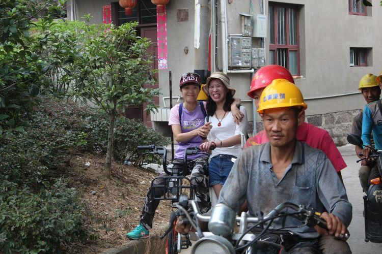 被抓拍的鲜明对比~游客骑摩拜,民工骑摩托……感恩生活,知足常乐