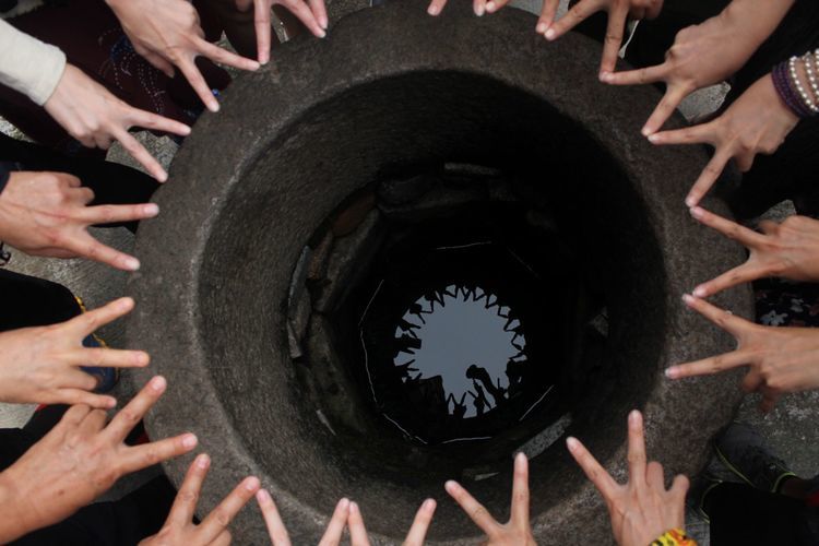 哎!这个现场要引用老干妈的现场台词……你们这些城里人啊!一口井都能玩半天
