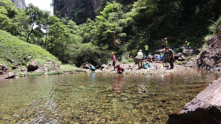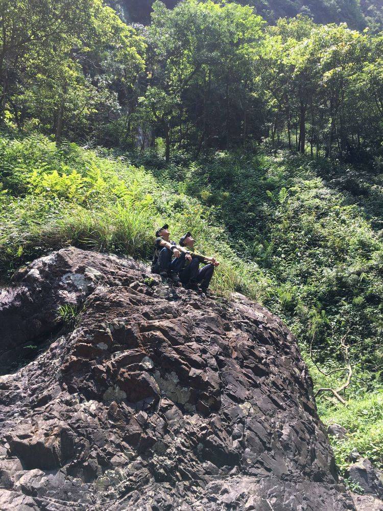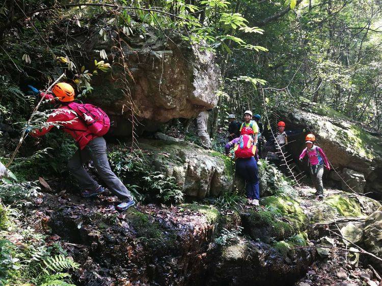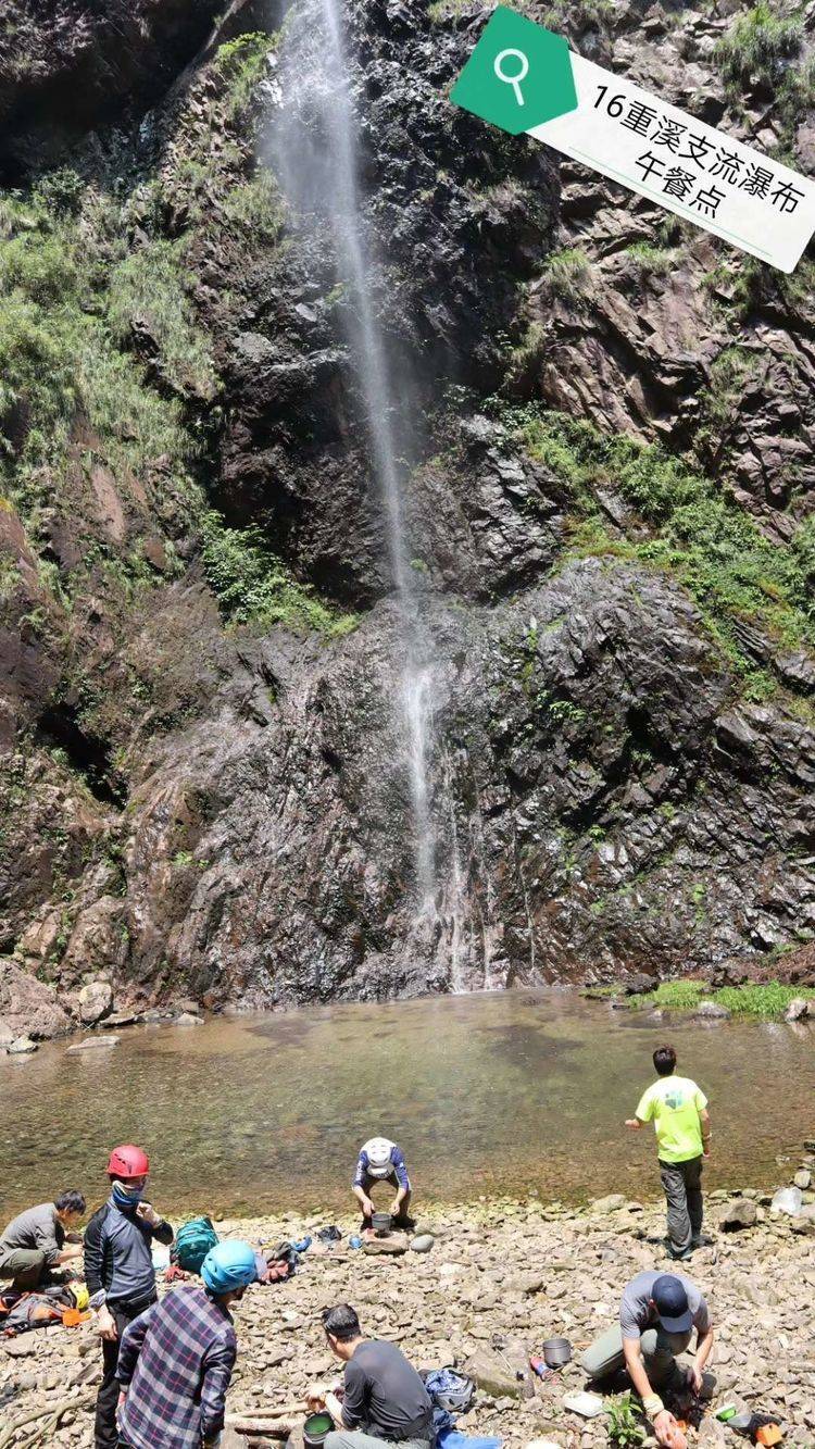 以下文字,转自领队野生~小学生日记版的活动总结报告~5月11日从16重溪峡谷上山,于14:00左右登顶,从一都方向切17重溪峡谷下山,于22:00回到乌江水库大路上,完成原计划全程圈越,因线路设计太长,运动强度、难度较大,含领队在内21名山地爱好者大家互帮互助,通力协作;部分路段由千叶前队开路后好走很多;并在千叶户外领队飞鸽及热心队友文哥,胡杨等帮忙下,到了大化山还有特意等候我们的3部车免去徒步下山之苦,顺利完成穿越。
