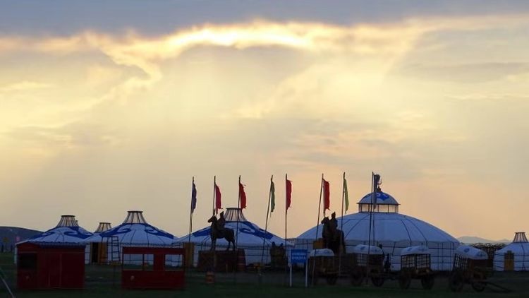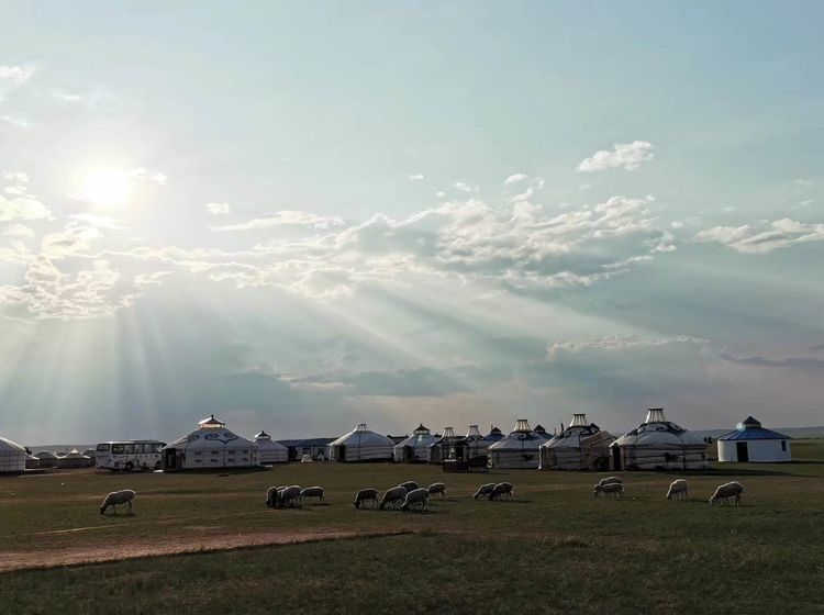 洁白的蒙古包散落在茫茫草原