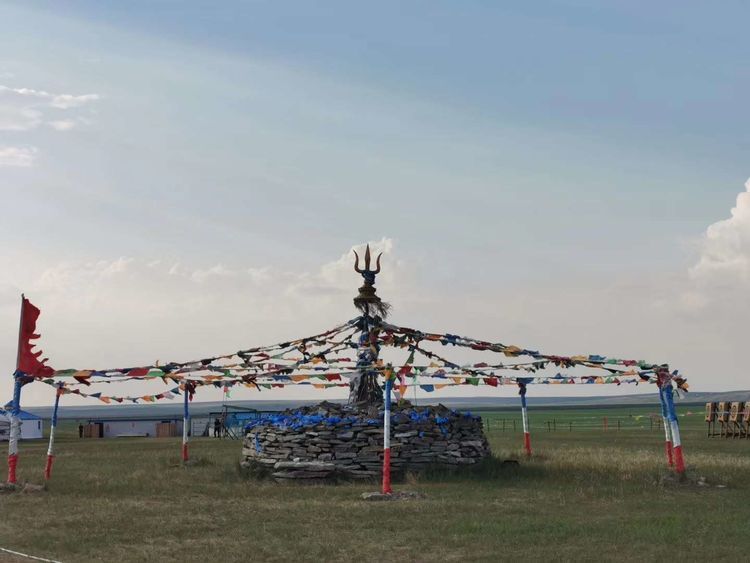 敖包~旧时,在辽阔的草原上人们用石头堆成的道路和境界的标志,后来逐步演变成祭山神、路神和祈祷丰收、家人幸福平安的象征