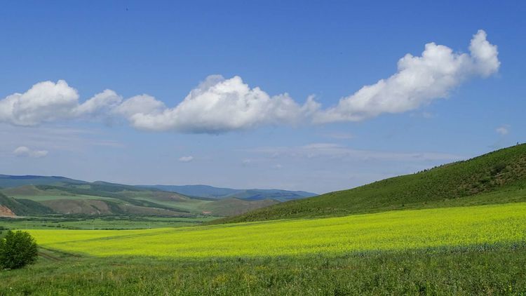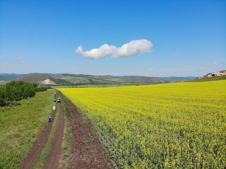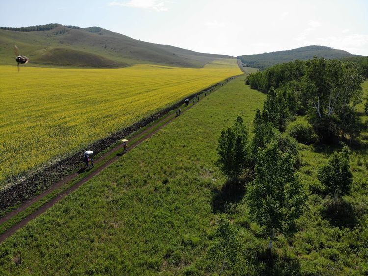 草原油菜花,与白桦林接壤地带