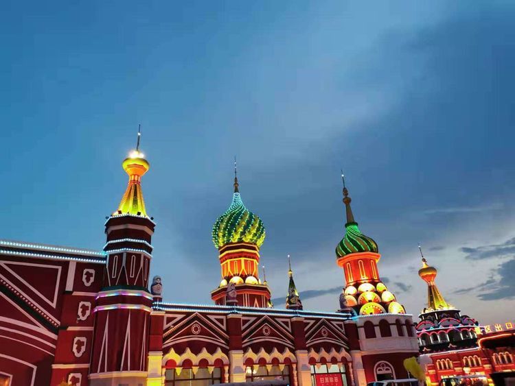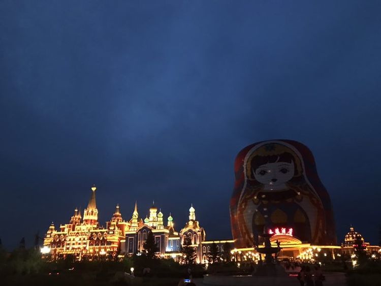 满洲里的套娃广场的夜景很漂亮!
