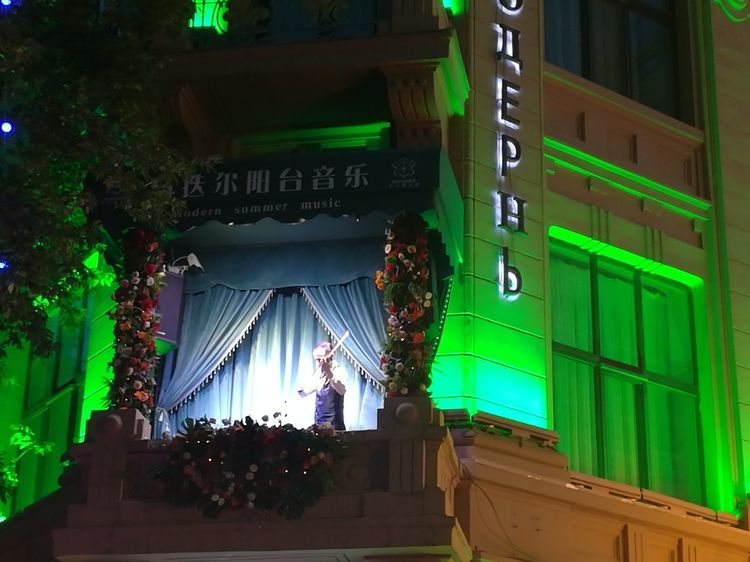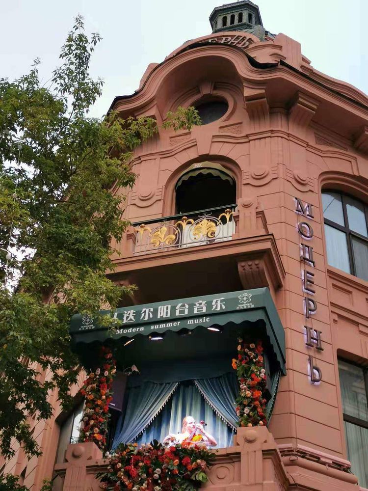 马迭尔宾馆的阳台音乐表演