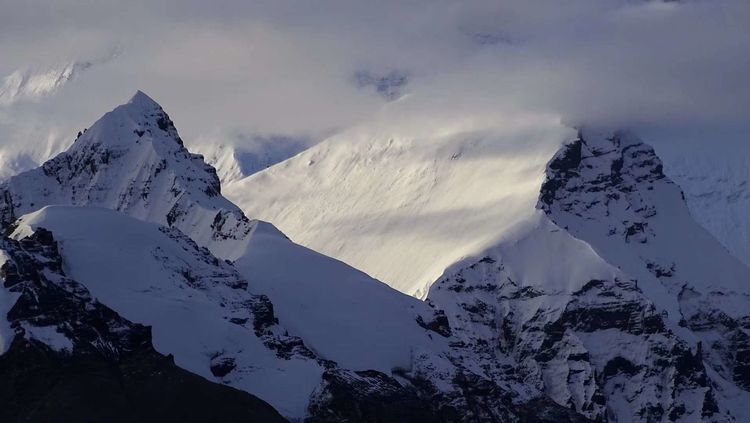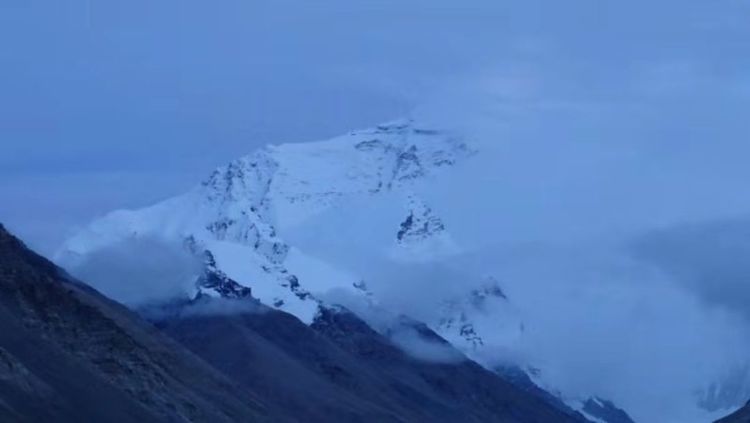 在珠峰山脚下过了一夜,清晨,随着天色渐渐亮起,雪山也慢慢云开雾散