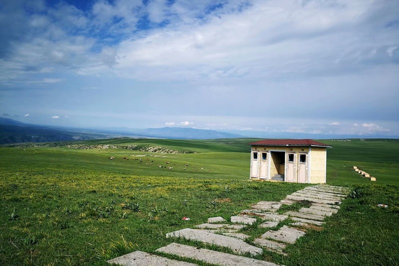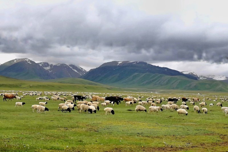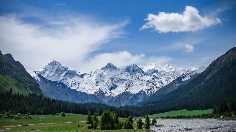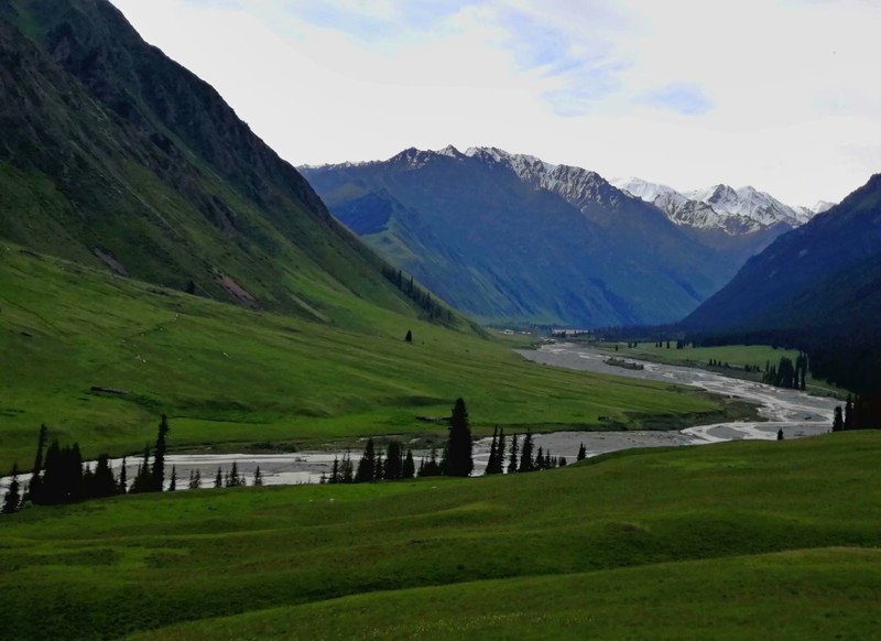千年的风吹过,带来远古讯息。我们脚下的土地,承载过得得马蹄,还是骆驼沉重的呼吸? 远处,雪山静默,俯瞰我们。雪山脚下,绿草如茵,花儿缤纷。