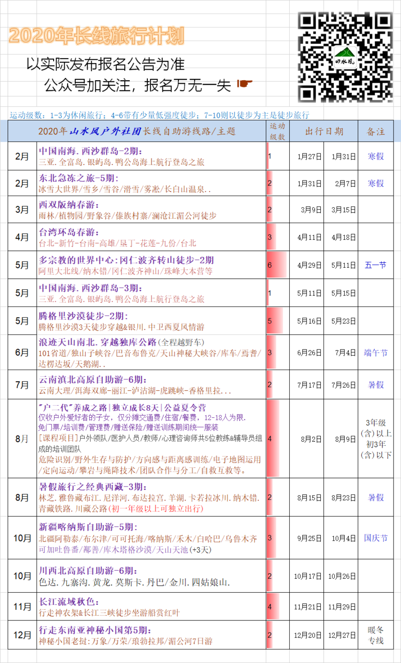 山水风社团一般都提前发布活动计划,以后有月计划、年计划。