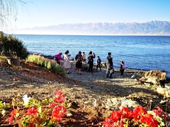 作者:彼岸花发布于 2019-02-14 10:00:30 2月6日正月初二 ,我们一行12人(8大人4小孩)在野生领队的带领下赴云南滇西边城过年8天游。 路线:福清包车--长乐机场->昆明->大理--洱海双廊小镇 傍晚,在大理乘坐的的士..在一路拥塞的情况下终于到达了洱海双廊。洱海沿途停靠着许多从附近省市自驾来的旅行车,豪车美女,甚是亮眼。面向洱海,斜阳西下,碧海蓝天,海鸥纷飞……美景瞬间治愈了舟车劳顿、长途跋涉的疲惫。 入住双廊小镇古戏台对面的梦之院客栈,客栈院墙内花草茂盛,初步感应到云南“四季如春”的魅力。 洗漱完毕,开启夜市模式,过桥米线不可少,烤乳扇味道也不错。在水果摊上看到了比较特别的水果:紫胡萝卜、酸角、菠萝蜜、牛油果等,发现这里的水果个个个大光滑。 世界很大,生活很小,走出来,赴一场“风花雪月”的盛宴,彩云之