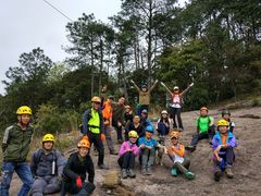 集体照中有汪汪!狗年的第一次山地穿越,有狗相伴,今年一定旺旺!因为对经典两字充满了好奇,又控寄不住我寄己,即使因天气原因,活动延一天,正百般纠结的情况下,又被拼锅的某大姐放鸽子后,干脆把心一横~走!因为野妈说~线路很多,经典很少走一次不容易,一辈子忘不了强者上。。。为了对得起经典两字,这次我特地准备了平常都不喝的红牛当你决定出发,最难的已经过去,只有更难的在等着你。。。这是我在线路走到半程时,非常痛的领悟!借一句高深莫测的文言文用一下~非知之难,行之惟难;非行之难,终之斯难。二月初二,龙抬头,我们也昂起首,望着远处的山!出发啦!不知从哪冒出来的,居然从村口一路跟上来的~旺旺,小坚强!帅得无边无际的迪克,一会温柔地轻声细语~快回去,你会受伤的!一会又用人话喊~再跟上来,午饭吃的就是你!帅迪很努力,但结果很无奈,固执的小坚强一路上不离不弃!队友~寂寞的潜水艇,机耕道上正踩着猫步,似乎像走秀,而