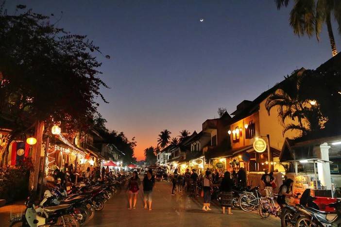 观看日落后返回老城,晚餐享用老挝特色碳烤小火锅。餐后可自行前往【琅勃拉邦夜市】,选购当地特色小礼物,体验当地生活。
