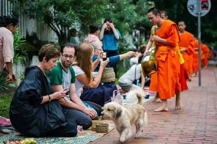 3/22 琅勃拉邦再来一日游。在琅勃拉邦有一个神圣的传统:每日清晨,僧人们会排成一行,带着钵走上街头,当第一缕阳光照射到寺庙的金顶,一条条黄色的僧袍从远处出现,僧团一个个赤脚,缓步走近,而当地的百姓则会准备好食物、果蔬,采用跪立姿势,双手恭敬合十,在路边静静等候,当僧人走到旁边,布施者会虔诚地将米饭放进钵中,随后僧人们行礼、诵经、远去。这是每天都会上演的仪式,当地称为【清晨布施】。今天一早,有兴趣的话,你可以成为布施者中的一份子,在这个过程里感受这种纯粹的喜悦,不想早起的小伙伴也可以睡懒觉啦,然后自由活动(看下文推荐)