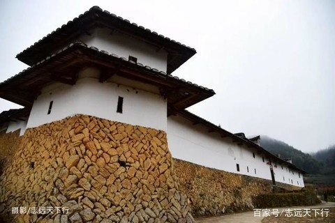 一座占地数千平方米,供百人大家族居住的庞然庄寨,为何会以“爱荆”为名,这里面还有一个动人的爱情故事......爱荆庄建于清·道光十二年(公元1832年),土石木混合方形寨堡式建筑,面阔79.2米,进深67.5米,占地面积5200多平方米,是典型的闽中土寨堡建筑。爱荆庄由正座、下座及后座、边房、过雨亭、横楼、书斋楼、后花台和绕庄一周的跑马道组成,共有360间房屋,庄前有牛抆池,规模大,保存完整,布局合理。因建庄寨的石头呈米色,而又被称之为“米石寨”。