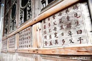 与嘉禄庄相邻的九斗庄,也由兄弟合力建成。起建者是张昭融的三个儿子明良、明恪、明起。九斗庄始建于1895年,建造时间长达14年。而九斗庄名称由来,据说是因为它占地之大,足可播种九斗稻种。族谱记载,九斗庄建造时,明良、明恪、明起三兄弟已步入晚年。因此九斗庄的建筑“个性”处处可见稳重大气。它的围墙很朴素,并不像其它庄寨有大墙高耸,有枪眼有碉楼。光从外墙看,人们并不能想见内里是怎样一座深宅大院。但九斗庄内却像一位饱读诗书的长者,雕梁画栋间尽显智慧。走进九斗庄围墙侧边的门,便见老宅院墙高大,内部用材硕大,厅堂的左右厢房的隔扇窗和下绦环板上,全是楷书木刻,书法笔力端庄厚重,语辞气势雄浑磅礴,令人叹为观止!最叫人赞叹不已的是大厅前廊上的卷棚,抬头仰望,大约有30多米长的卷棚上以镂空雕的手法,刻满了吉祥图案,梁架则以浮雕透雕工艺,雕刻了许多栩栩如生的人物、花卉等,在卷棚上精雕细镂,永泰众多古民居中,九斗庄也是唯一,可谓不惜工本。