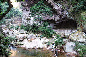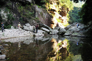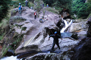 午休后,继续前往13-12重,过猫跳峡(难点)、翻越11重高绕,下到乌龙吐水瀑布,沿着栈道出景区大门;