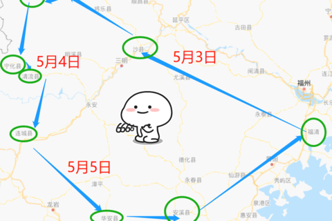 5月3日8:00集合出发、5月5日17:00之前返回福清。