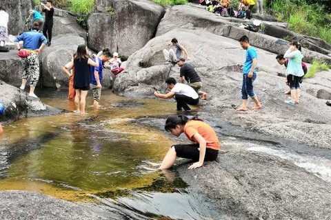 2、选择满意的憩息地,就可以在此处玩水、打水仗、滑水、游泳、跳潭、煮饭、午休。。。领队视情况许可可能安排水上的、分组PK项目,活跃活动氛围。
