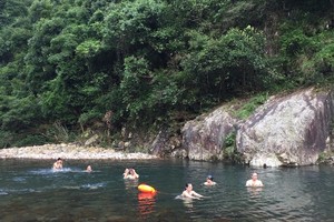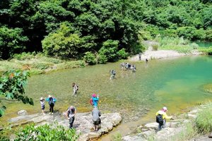 3、行进过程中遇到涉水或泅渡过河、会遇到水潭、也可能遇到急流,须涉水、泅渡、游泳、跳潭、漂流而下;因顺流而下运动量并不会很大。中午12点左右停歇在一处好看水潭边、煮饭、午休;跳潭、玩水。