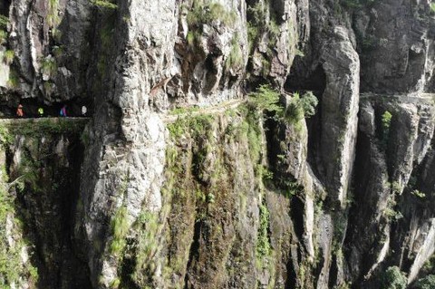 中午:预计11:30左右到达下施红旗渠电站,沿着挂壁水渠,前往下施峡谷,取溪水煮饭、煮茶。