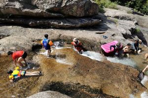 闽侯大青坑又称苦竹溪、“桃源谷”,是第一溪的重要支流。也是福州地区户外运动线路中,溪源宫流域山地流域的知名景点、夏季玩水必去的热门之地。福州许多驴友的“第一次”,就是从这里开始。大青坑溪床宽阔、平缓,溪内光照充足,水质清澈透亮。落差不大的河段上,因长期水蚀自然生成的一些顺滑的平台、斜坡、水池、水潭,成了我们泡水、冲水、游泳、玩水的天然水世界,有着天然"水上乐园"一般的层次结构。夏季,这里真是避暑清凉的好去处,每周末,甚至非周末,都吸引着一批又一批远近慕名而来的爱好者。