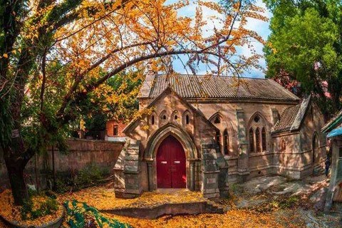 石厝教堂的银杏这几年来轰动了全国,有幸目睹但可能也进不来围墙,只能找个栏杆缝隙偷窥一下...