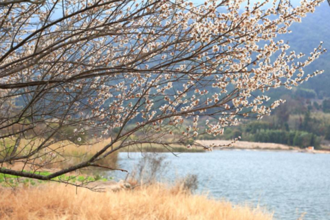 1、集合坐车走高速直达嵩口下高速、前往第一站[大喜村],车程100分钟左右,大喜村赏湖畔青梅花/柃木花,
