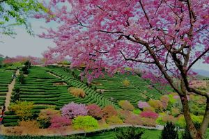 这里的樱花品种多,有中国红、绯寒樱、云南樱、染井吉野樱、牡丹樱、福建山樱等,品种多达42个。花期大约在每年1月下旬到3月中旬,樱花节一个品种接着一个品种开。 第一波盛开的主要是红色的绯寒缨、中国红、雾色樱、八重樱、牡丹樱;第二波盛开的主要是粉色的云南樱和白色的染井吉野樱;第三波盛开的将是粉色的松月樱、关山樱、普贤象樱、御帝吉野樱等。