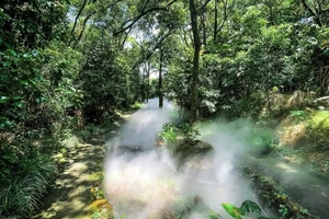 4、下午行走洞天岩景区,在清凉树荫下和水雾弥漫的林间步道,观景徒步,赏岩叠洞胜108景