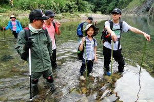 涉水体验的小溪只有2000米长度,多数有树荫遮阳,且随时可以很方便上岸改为正常行走!水中露出的石头随时可以坐下来休息!水中可以观赏溪鱼,草虾,水水底下可以拍摄水草、鱼虾、石头、水流及水下的世界(手机要用防水袋/超市购买,+自拍杆可以深入水潭底下拍摄)