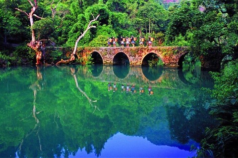 早餐后,我们出发前往【荔波小七孔】,荔波位于贵州与广西的交界处,小七孔更是被称为地球上的绿宝石,我们从东门进入小七孔景区,穿过清朝时期修建的小七孔桥,步行于这“抬头张家界,低头九寨沟”的自然风光,步行于走道上,水花溅落在四周,感受【68级跌水瀑布】和【拉雅瀑布】的壮观,我们戏水踏步于“水上有石,石上有树,树植水中”的【水上森林】,归隐于卧龙潭瀑布。在天然的喀斯特高原湖上,我们划着木筏【游船于鸳鸯湖】,尽情的用充足的时间深度这里的山水美景。结束后乘车去荔波县入住,约半小时抵达荔波县。大家会感受荔波美食街的热闹景象,好好的满足一顿晚餐的欢乐时光。