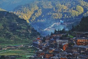 郎德上寨坐落在苗岭主峰雷公山麓的巴拉河上游,作为全国第一个民俗风情村寨游览地这里是有名有实:吊脚楼、芦笙堂、风雨桥一个都不少。苗寨只有上百户人家。民居从低到高建造在山坡上,错落有致。
