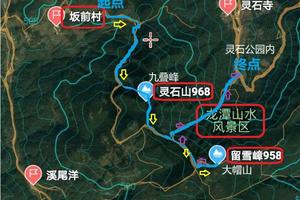 海拔升降:460米起点-垭口600米-九叠峰960米-山间步道850米-留雪嶂960-灵石公园徒步终点200米;不走回头路。