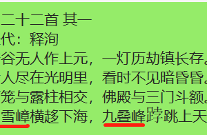 留雪嶂,属于福清第三高峰大帽山之主峰,古时候经常会有积雪,所以得名。九叠峰属于灵石山主峰,灵石寺就坐落于九叠峰(又有称芙蓉峰)山下。在福清当地,这两座山有许多神奇的民间传说,也有着丰富的传统文化色彩。