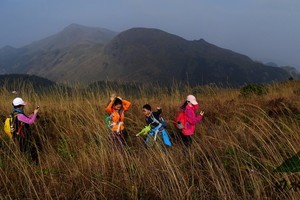 下午:山顶开阔地可观赏十八重溪流域山地、金瓜石、孩儿尖、龟湖、南湖顶等福清市区诸多山峰;再前往南麓草场秘境,很少有队伍徒步至此。为高山草甸(草坡)地貌。最后往“凤岭亭”方向下山,回到东山村。整个下午海拔累积上升150-200米左右,累积下降850米左右,徒步时间2.5-3小时。