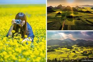 4、罗平坝子:云南的春天在罗平!我国春季最早的油菜花地,每年2/3月份,20万亩油菜花在罗平坝子竞相争放,放眼望去是一望无际的金黄,如金色的海洋,荡漾着油菜花香。