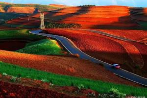 10、东川红土地:这里是云南红土高原上最集中、最典型、最具特色的红土地。因土壤里的铁质经过氧化慢慢沉积下来,逐渐形成了炫目的色彩。主要有落霞沟/七彩坡/打马坎/乐谱凹等景点;