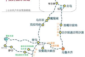 车程350公里/6小时,游玩3小时;安集海大峡谷(备选),101省道百里丹霞等。
