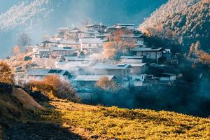 最早见于国内十大徒步路线之云南洛克之路....是尼汝徒步路线的起点。向东可去亚丁三神山;向西可去普达措。这是一个与世隔绝、被时光湮没的藏族古村落,拥有我国最原始生态的自然美景,被人们称为“秘境中的秘境”、“真正的世外桃源”,亦被誉为“世界第一村”,这里有藏族古村、南宝牧场、七彩瀑布、迪吉草场与帕姆乃仙人洞等风景。