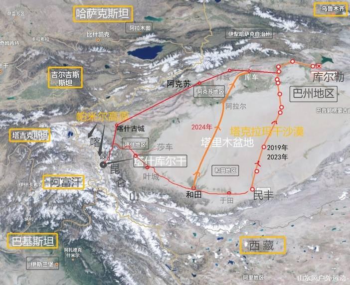 南疆&帕米尔高原地形图,及山水风历次南疆活动线路参考: