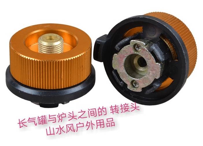 搭配户外炉头使用,长气罐与炉头之间须连接一个转换头如图
